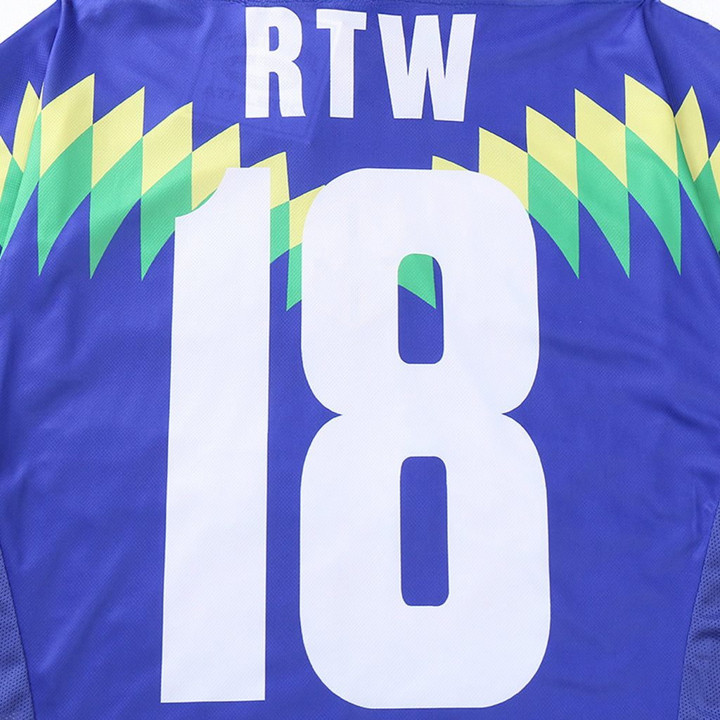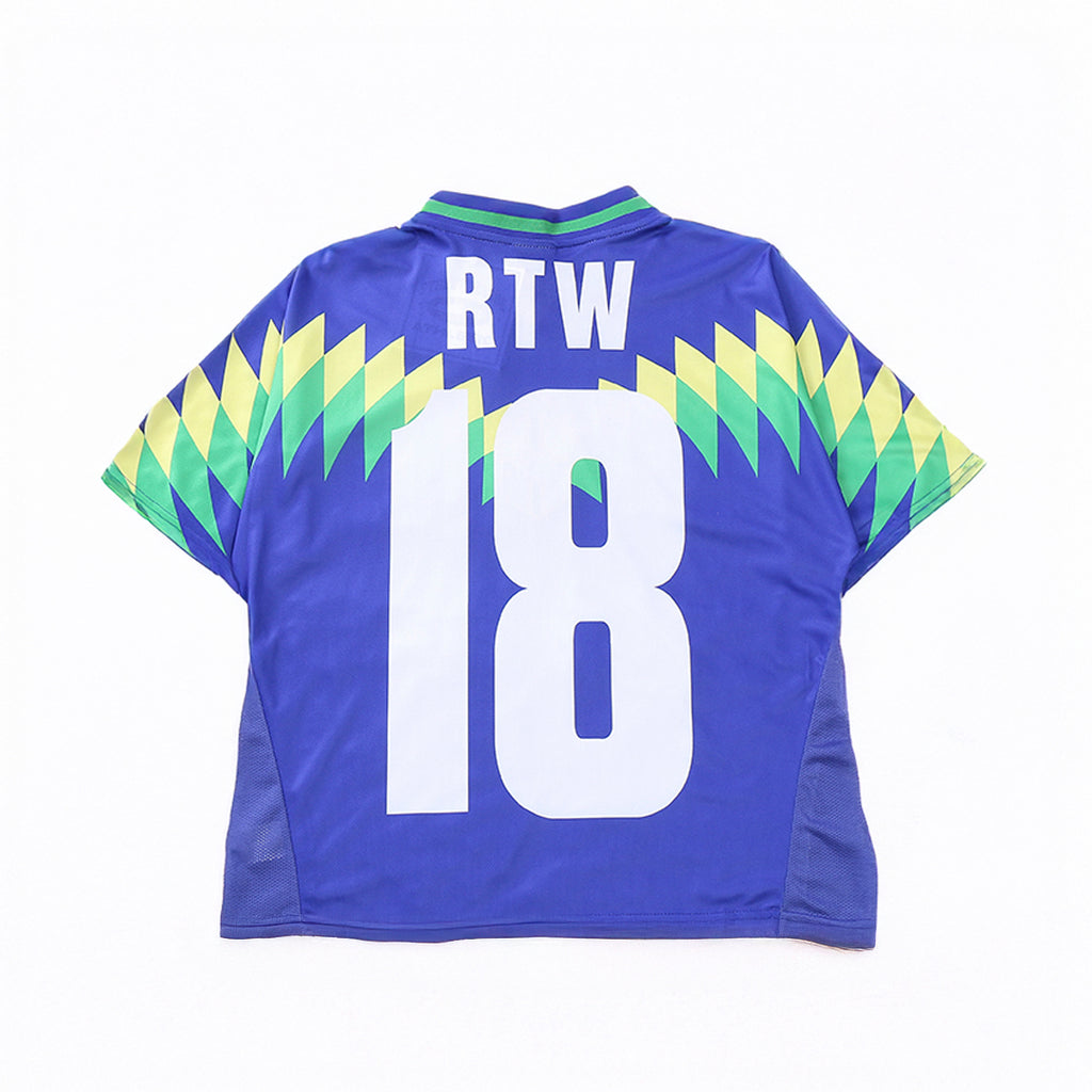 O design fusiona estilo esportivo com streetwear emblemático, apresentando detalhes cuidadosos e corte confortável que celebra a estética única da marca. A construção em tecido respirável garante versatilidade tanto para uso casual quanto para momentos mais descontraídos. O tom azul Brasil se destaca como elemento central, criando uma peça que combina herança futebolística com a irreverência característica da Corteiz RTW.