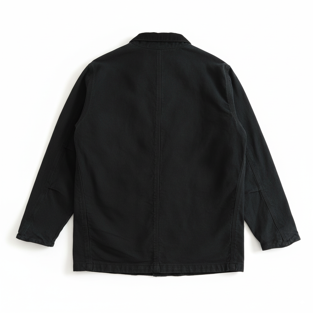 Desenvolvida em duck canvas algodão com construção firm-hand, esta jaqueta vintage dos anos 90 apresenta costuras triplas reforçadas nas áreas de maior stress, gola corduroy com snaps para capuz opcional e split-back com design bi-swing para mobilidade total durante o trabalho.